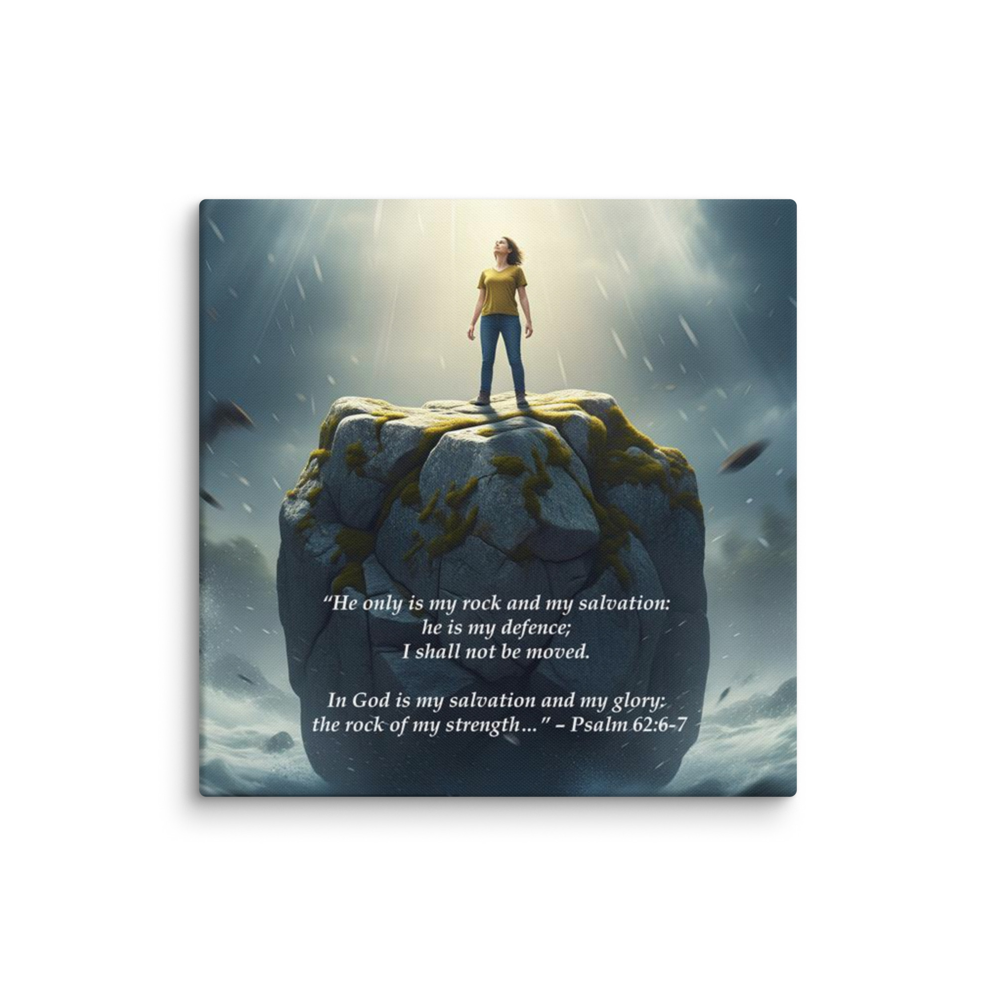 This piece is more than art…it’s a spiritual rally cry. Perfect for prayer rooms, sanctuaries, or any space where faith meets fortitude, “Unshaken” reminds us that in God, we find our salvation, our glory, and the rock of our strength.